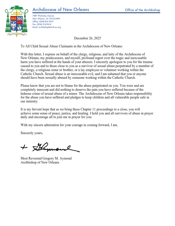 The Archdiocese of New Orleans has ZERO tolerance for abuse.